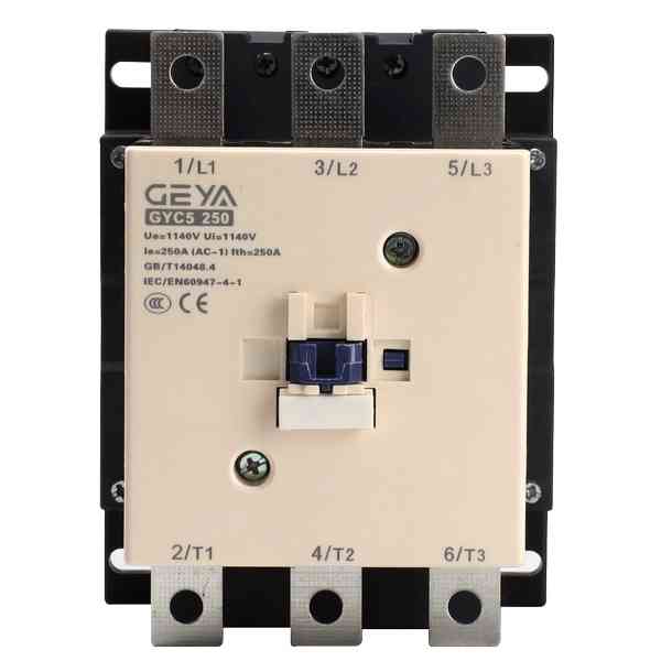 产品介绍:GYC系列大安培接触器适用于交流50\60Hz,电压至1000V,电流至1600A的电路中,可控制各种类型的电动机,可控制电阻、电感和电容性电路:加热、照明、功率补偿、变压器控制配电电路、工业配电,绿色电源配电。